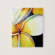 with original art design from watercolour painting by Sacha Grossel of tropical yellow and white with lime green highlights frangipani flowers in close focus, macro style. This bright, colourful, floral botanical design is reminiscent of summer, surf culture, hot weather and being near the beach.