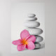 A pink frangipani flower and a stack of zen pabbles make for a beautiful, balanced image.