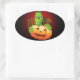 Frankenstein Monster Cartoon with Pumpkin Oval Sticker