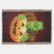 Frankenstein Monster Cartoon with Pumpkin Throw Blanket