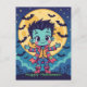 Cartoon depiction of a younger cuter Frankenstein Monster. Full moon with bat's flying all around. Frankenstein in a Punk Rock style.
