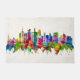 Elegant Watercolor Skyline of Frankfurt, a central German city on the river Main, a major financial hub that's home to the European Central Bank