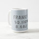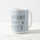 Coffee mug featuring Frankfurt Germany latitude and longitude map coordinates in modern urban font