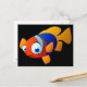 A fun animated looking cartoon clown fish named Frankie. Very colourful in bright oranges and blues with a sweet face and big round eyes.