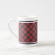 Bone china mug with the Fraser of Lovat family modern clan tartan pattern. Traditional vintage Scottish plaid from 1893 in bright red, navy blue, forest green and white.