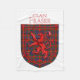 Fraser Scottish tartan plaid pattern design for the Fraser Clan Family underneath the red Lion Rampant Shield of Scotland.