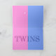 Simple fraternal baby boy and girl twins announcement greeting card inside colour top and bottom is half pink and half blue with the word TWINS in contrasting pink and blue