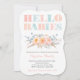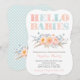 Gender neutral baby shower invitation cards for twins or perhaps a joint shower? Florals in shades of peach with mint and grey foliage.