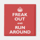 Funny Keep Calm and Carry On parody magnet. Click "Customise" then click "Edit" to change the background to any colour!