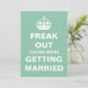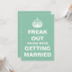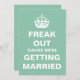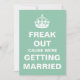Fun "Freak Out 'Cause We're Getting Married" design, a "Keep Calm and Carry On" parody.