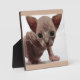 A rare and exotic cat breed. Large eared furless sphynx kitten. Looks a bit alien and strange, but it is loveable and friendly. His loose fitting hairless skin is still full of wrinkles. His large black lemon-shaped eyes make him slightly freaky and scary but he is quite adorable.