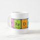 Frederic spelled out as F Re D Er I C (Fluorine Rhenium Deuterium Erbium Iodine Carbon) on a mug for the scientist in you.