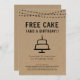 Free Cake (And a Birthday!) Funny invitation wording for a fun birthday party. The tiered cake artwork is hand-drawn on a wonderfully rustic kraft background.