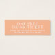 Wedding reception hand painted orange peach blossom artwork one free drink voucher card. Ideal to give out to members of your wedding party to get a free drink or drinks at your wedding reception after the open bar closes to keep your drinks costs down but to remain generous to those special helpers, close family and guests on your day. Customise with your drinks offerings and disclaimer. Original hand botanical watercolor wildflower blossom painting and design by Sarah Trett for www.mylittleedenweddings.com