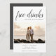 Beach destination save the date cards are for the fun couple who can't wait to share their wedding date with their family and friends. Funny "Free drinks (and we're getting married) design in grey script is customised with your photo, names, wedding date and location.