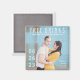 Your photo is the feature on these modern "Free drinks (and we're getting married) wedding save the date magnets. This design will work best with a photo similar to the one shown. It may require some fine-tuning by the designer to place it correctly. Contact me through the button below, I'd be happy to place your photo properly and send you a custom order link.