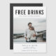 These save the dates magnetic cards are for the fun couple who can't wait to share their wedding date with their family and friends. Funny photo "Free drinks (and we're getting married) typography black and white design is customised with your photo, names, wedding date and location. One of our most popular designs - a save the date your friends and family will love!