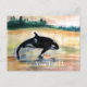 Beautiful orca whale in jump watercolor drawing.Tex customisable postcard for nature and whale lovers.