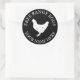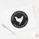 Free range farm fresh eggs chicken silhouette Classic Round Sticker. Vintage design with farm animal silhouette and rustic typography template. Add your own custom business name, homestead or quote. Great for selling eggs, poultry meat, farming business, restaurant, market shop, local grocery store and more. Customisable black and white colours.