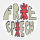 Free Speech design shows the words "free speech" with a couple of asterisks demonstrating typical censorship of any simple political slogan. Protect the first amendment for all.