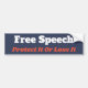 This nonpartisan bumper sticker says "Free Speech Protect It Or Lose It"