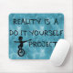 A grinning fool on a unicycle carries the message that "Reality Is A Do It Yourself Project." Great gift for an independent, free thinking spirit, or buy it as a reminder to think for yourself.