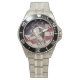 This men's stainless steel watch is designed as a nod to classic diver and military watches. This design features a bald eagle breaking through to freedom with an American flag background. You can keep or change the background graphic, and add text with the Zazzle 'design tool'. Water resistant up to 300 ft. Includes one year manufacturers limited warranty.
