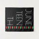A Juneteenth holiday tapestry. The design is black with a red, black, and green stripe and white letters.