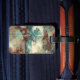 The artwork featured on this luggage tag is based on an regional encaustic artwork by Cheryl holz titled "Freedom Flowing." The mantra "freedom resides in the present" runs through flowing patterns created by applying a flame to hot wax encaustic paint and pigments.