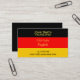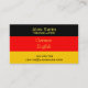 A stylish modern business card suitable for a freelance German language translator and interpreter. This design features a German flag symbol and can be customised with your own personal details. Black, red and yellow colours to represent Germany.