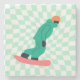Freeride Snowboarder In Green Suit Chequered Stone Coaster