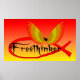 Have some fun with the fish waving christians with some fantastic sea life of your own: the fish symbol with wings and the word "Freethinker" in the centre.