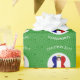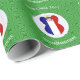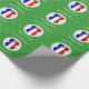 French flag Christmas angel personalised wrapping paper. Design features an angel, dressed in the flag of France inside a white circle of squiggly squares. Background is green squiggly squares. Personalised with name, year, and holiday, or whatever you wish. Wrap your holiday gifts and share your heritage or travel plans at the same time.