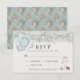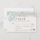 This cute french cafe/bakery/patisserie theme Bat Mitzvah RSVP/response/reply card features a pistachio green/blue box and cakes/desserts on a cake stand. The reverse side features a pistachio green background with floral patterns. Personalise for your needs. You can find more matching products at my store.