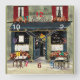 On this wall clock is an original watercolor painting by Anne Ormsby of a French bistro.