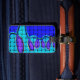Outlined in black, this shape is filled with a gradient of purples and pinks, offering a vibrant contrast to the structured background. Its organic and flowing form enhances the dynamic feel of the piece.