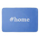 Bright French blue solid colour bath mat features #home - or your choice of hashtag, word, name or initial. Brighten up an apartment all-white bathroom or mix and match with other bright colours.