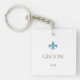 Classic French blue fleur de lis Groom, personalised initials monogram, keychain. The perfect addition to a groom tote gift bag. Designed to match our Regency French Blue Fleur De Lis Wedding Collection.
