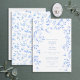A beautiful wedding invitation, featuring delicate French Blue floral watercolor botanicals. Elegant and formal, it is easily personalised with your unique details. Dress code field included (backspace over placeholder text to delete if you don't need it). DESIGNER'S NOTE: This product is very unique in how I designed it. I have 4 different card backs which you can choose from: a floral pattern; a photo; a solid colour texture, or cardstock. SEE VIDEO HERE for instructions on how to customise this design https://youtu.be/mYYUtyvVUTo . Thank you sooo much for supporting our small business, we really appreciate it!