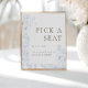 French blue floral line art 'Pick a seat' poster.