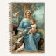 The French Blue Madonna religious notebook features an image from a beautiful antique French holy card printed at the end of the nineteenth century. Jesus and the Blessed Mother are surrounded by fluttering white doves and a hazy wooded landscape. The gentle blue and aqua image is printed on both the front and back covers.