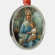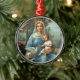 The French Blue Madonna ornament features an image from a beautiful antique French holy card printed at the end of the nineteenth century. Jesus and the Blessed Mother are surrounded by fluttering white doves and a hazy wooded landscape.