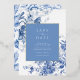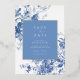 Make your wedding day uniquely yours with our customizable minimalist elegant wedding Save the Date featuring royal and dusty blue french toile garden florals with a gold foil border. This elegant invitation is easy to edit and have printed directly through Zazzle, allowing you to create a stylish and memorable addition to your special day!