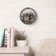 I received this as a birthday gift from my husband to replace a clock that had broken. It was perfect, pictures of my sweet family to see at every hour of the day. The size of the pictures looks nice for the size of the clock and I love looking at it! The only downside is there is no cover for the battery on the back, which makes me nervous having little kids running around the house, but an easy fix with some tape. The printing turned out clear, considering they were all cell phone pictures. Some of them look slightly grainy upon getting close up. But so nice overall!
