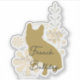 This French Bulldog design features soft flowers and leaves with a French Bulldog silhouette. Text in a script font floats around the Frenchie silhouette, describing this funny dog's characteristics.