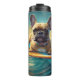 French Bulldog Beach Surfing Painting Thermal Tumbler