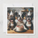 A funny and sweet illustration of French bulldogs with a birthday cake and wearing party hats. This is the perfect card for French bulldog lovers and small dog lovers,