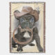 Western Style Blanket featuring adorable Black French Bulldog puppy wearing weathered cowboy hat and holding lasso.