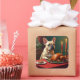 A festive and charming painting of a French Bulldog enjoying a cozy Christmas Eve dinner surrounded by delicious holiday treats and candlelight. Perfect for kitchen or dining décor.