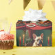 A festive and charming painting of a French Bulldog enjoying a cozy Christmas Eve dinner surrounded by delicious holiday treats and candlelight. Perfect for kitchen or dining décor.